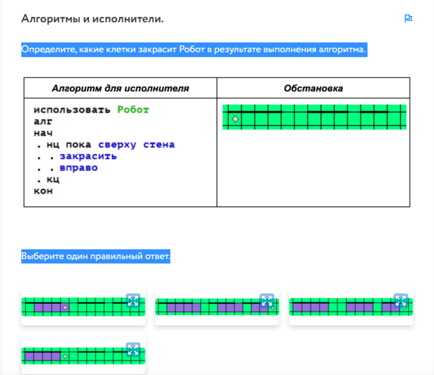 Значит, Робот закрасит первые две клетки: Ответ: 1-й вариант.