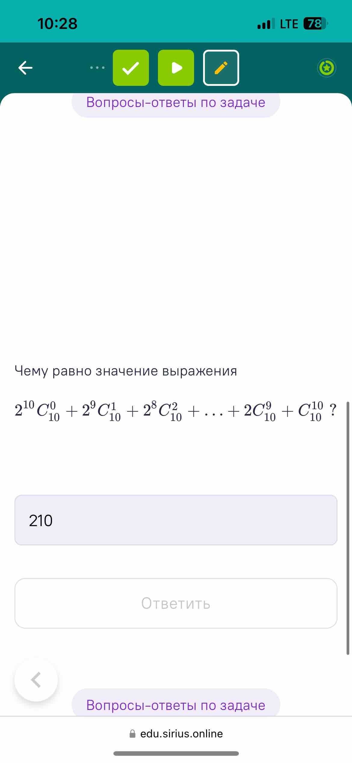Чему равно значение выражения 210C010+29C110+28C210+…+2C910+C1010 ?
