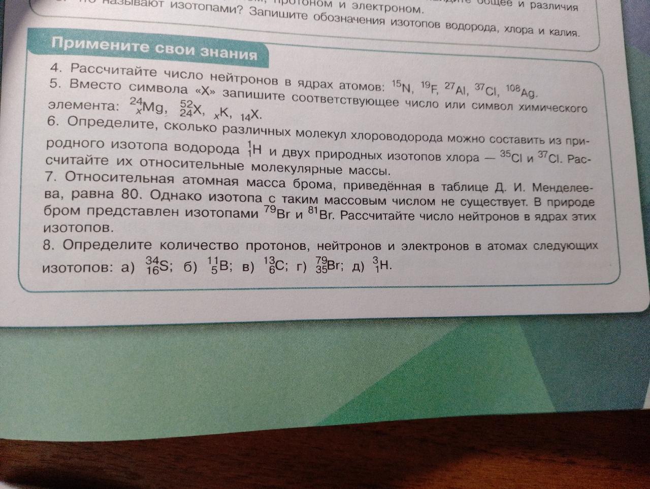 Задание под номером 8 просит нас определить количество протонов и электронов в атомах следующих изотопов: