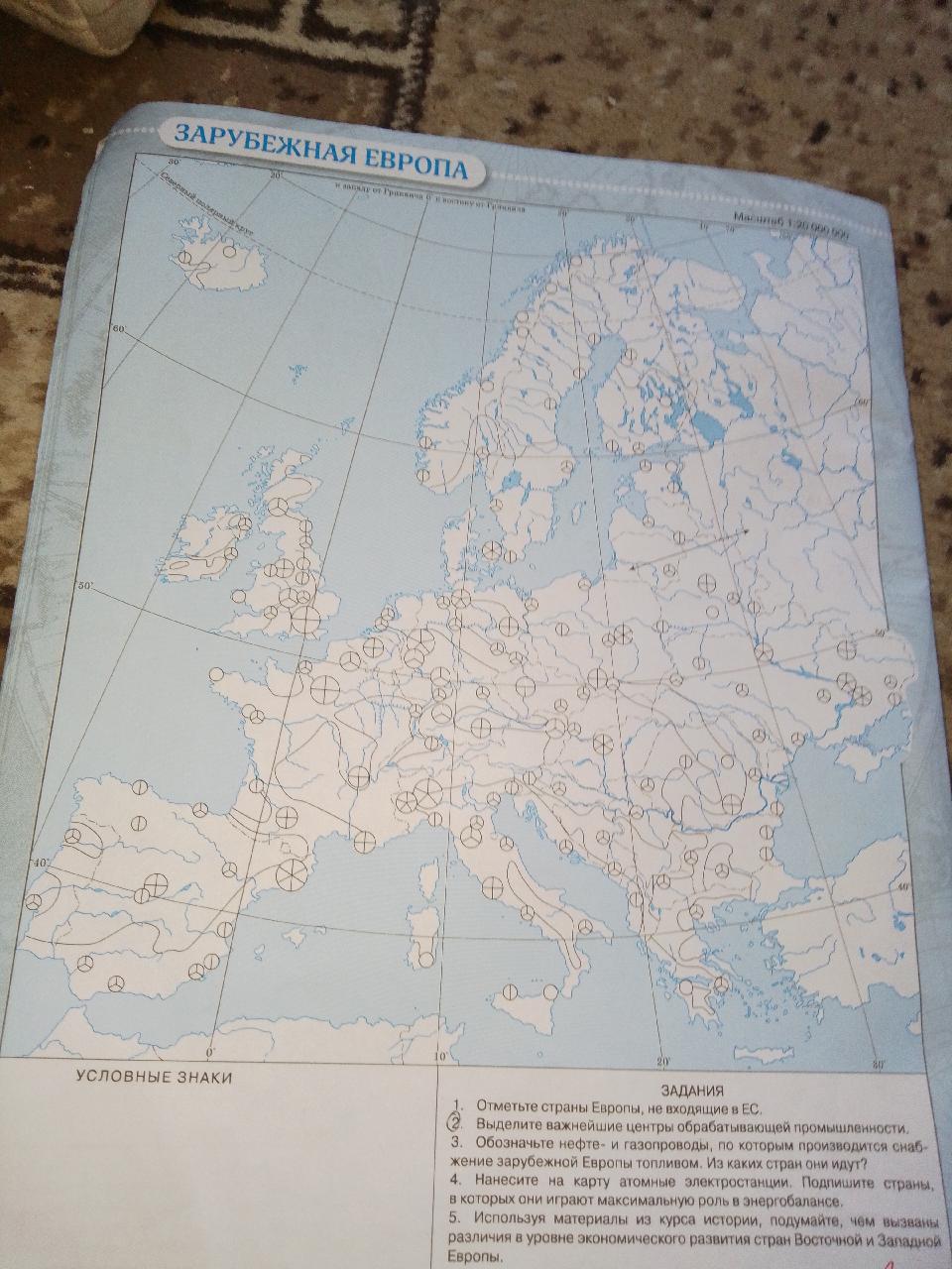 1. отметить страны Европы, не входящие в ЕС.