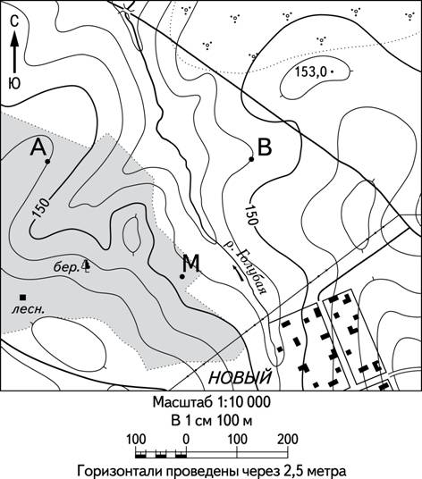 Постройте профиль рельефа местности по линии А – В. Для этого перенесите основу для построения профиля на бланк ответов № 2, используя горизонтальный масштаб – в 1 см 50 м и вертикальный масштаб – в 1 см 5 м. Укажите на профиле знаком «Х» положение реки Голубой.