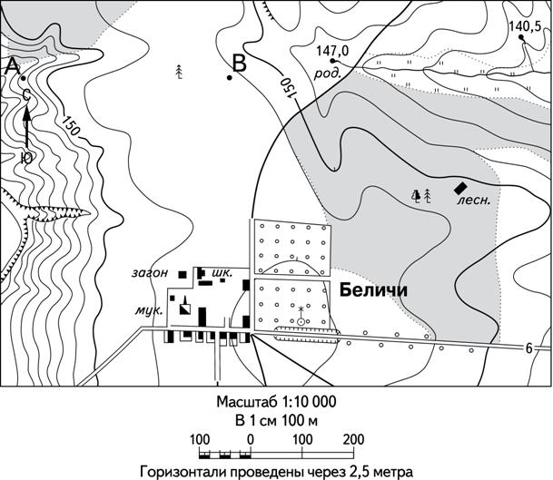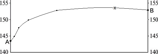 Постройте профиль рельефа местности по линии А – В. Для этого постройте для основу для профиля на бланке ответов № 2, используя горизонтальный масштаб – в 1 см 50 м и вертикальный масштаб – в 1 см 5 м. Укажите на профиле знаком «Х» положение отдельно стоящего дерева.