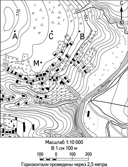 Постройте профиль рельефа местности по линии А – В. Для этого перенесите основу для построения профиля на бланк ответов № 2, используя горизонтальный масштаб – в 1 см 50 м и вертикальный масштаб – в 1 см 5 м. Укажите на профиле знаком «Х» положение точки С.