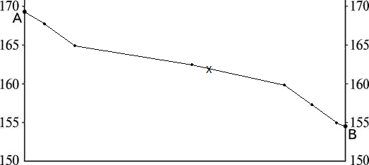 Далее, не изменяя масштаба (т.е. не масштабируя картинку), измеряем расстояние от точки А до В. Внимательно считаем миллиметры. Переносим точки пересечения с горизонталями. Отмечаем это на профиле.