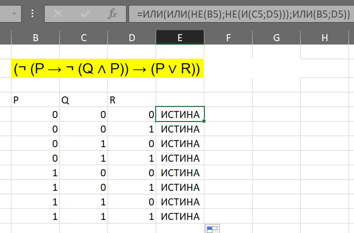 Построить таблицу истинности для формулы: