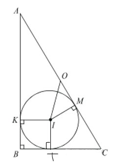 б) Пусть I и O — центры соответственно вписанной и описанной окружностей треугольника ABC. Точка O — середина гипотенузы (особенность описанной окружности около прямоугольного треугольника в том, что ее центр лежит на середине гипотенузы) AC = 6,5R = 26, и OM = CO − CM = 13 − 1,5R = 7.