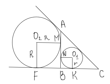 В треугольнике ABC стороны АВ:ВС:АС=3:4:5. Первая окружность вписана в треугольник АВС, а вторая касается AB и продолжения сторон BC и AC.