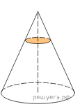 Сечение плоскостью, параллельной основанию, представляет собой круг, радиус которого относится к радиусу основания конуса как 3 : 9. Площади подобных фигур относятся как квадрат коэффициента подобия, поэтому площадь сечения в 9 раз меньше площади основания. Тем самым, она равна 2.