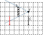 На рисунке построено изображение стрелки C в плоском зеркале и обозначена область, которая видна глазу в зеркале из точки Г. Из рисунка ясно, что глазу видна только половина стрелки.